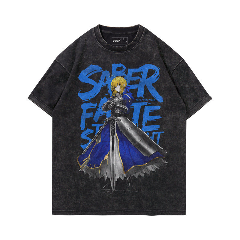 Fate吾王呆毛Saber水洗做舊 2026親子情侶男女同款 印花水洗短袖